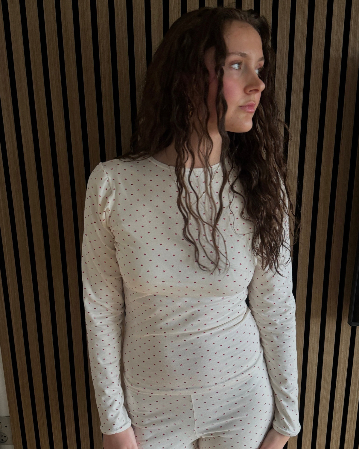 Denne top er lavet i en blød og elastisk bomuld, der føles rar mod huden. Den giver en følelse af hyngre og afslappelse.